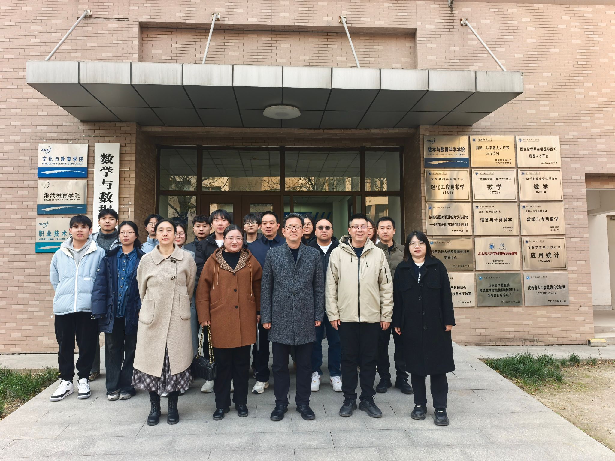 之后,师生一行前往陕西科技大学开展参观交流活动,与该校数学与数据科学学院的研究生们进行了深入且富有成效的交流。交流过程围绕着多个重要方面展开,尤其是论文撰写的要点和技巧,以及学科竞赛的组织、参与和应对策略等内容。现场大家积极发言,各抒己见,气氛浓厚。