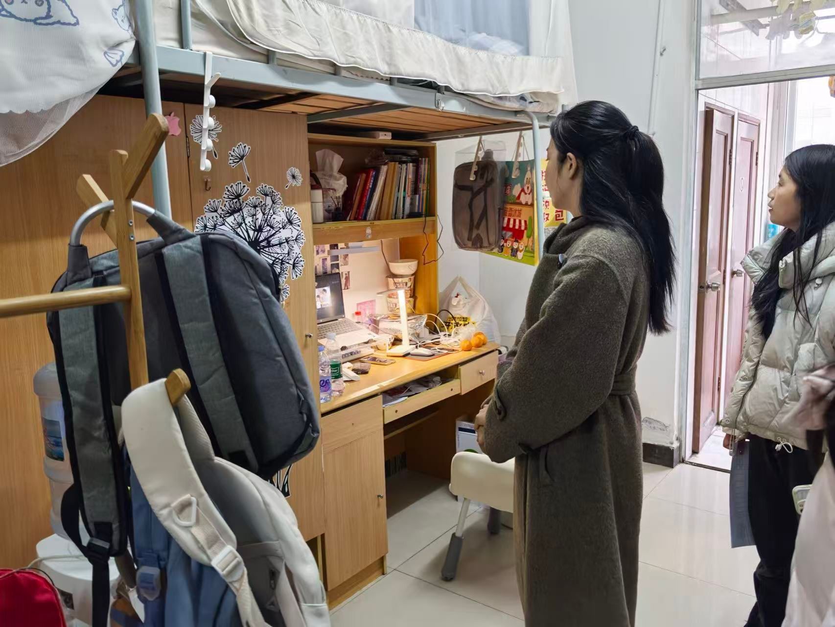 辅导员带领学生会生活部开展全覆盖、零距离宿舍走访慰问活动,为冬日校园增添暖意。