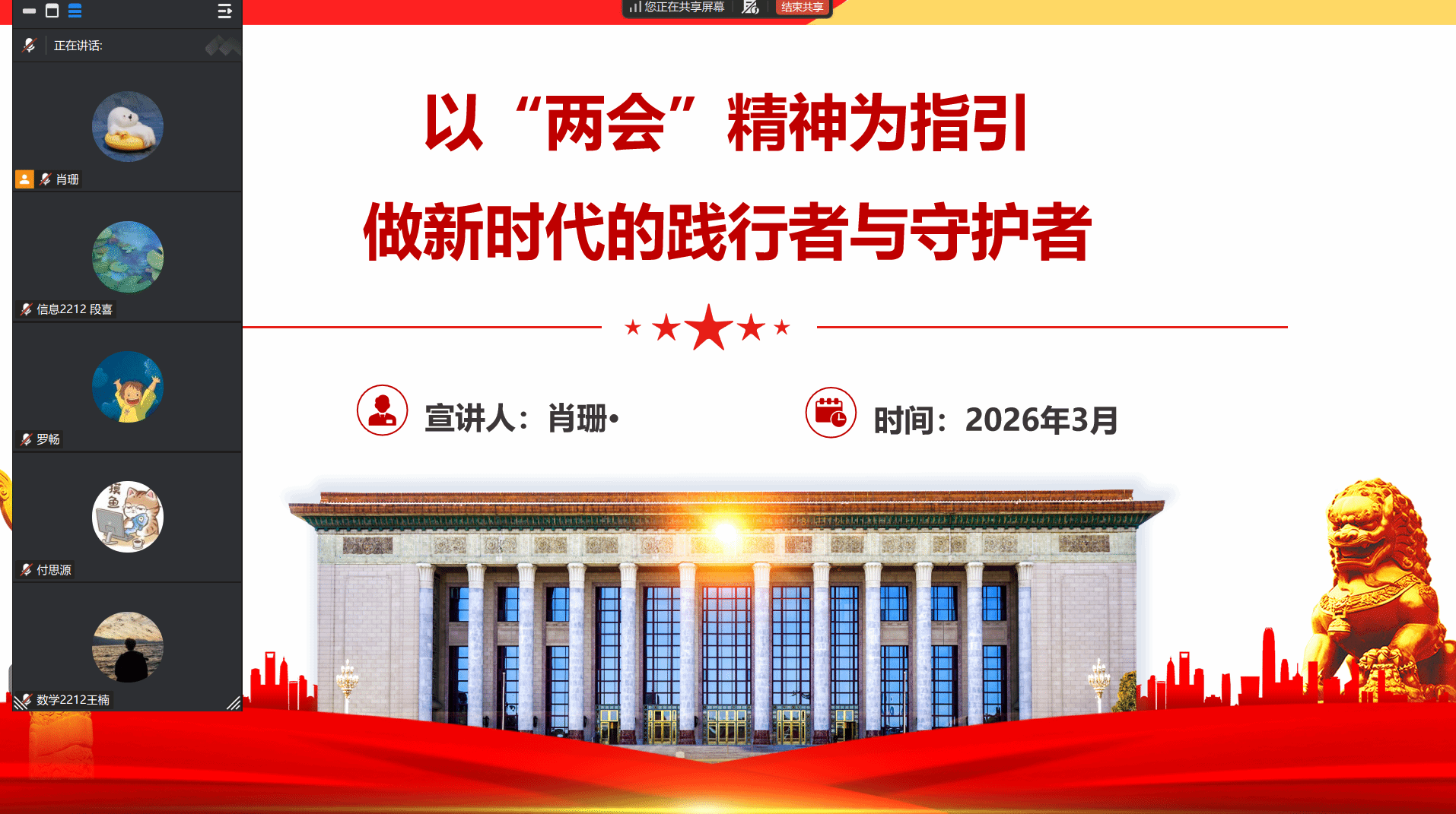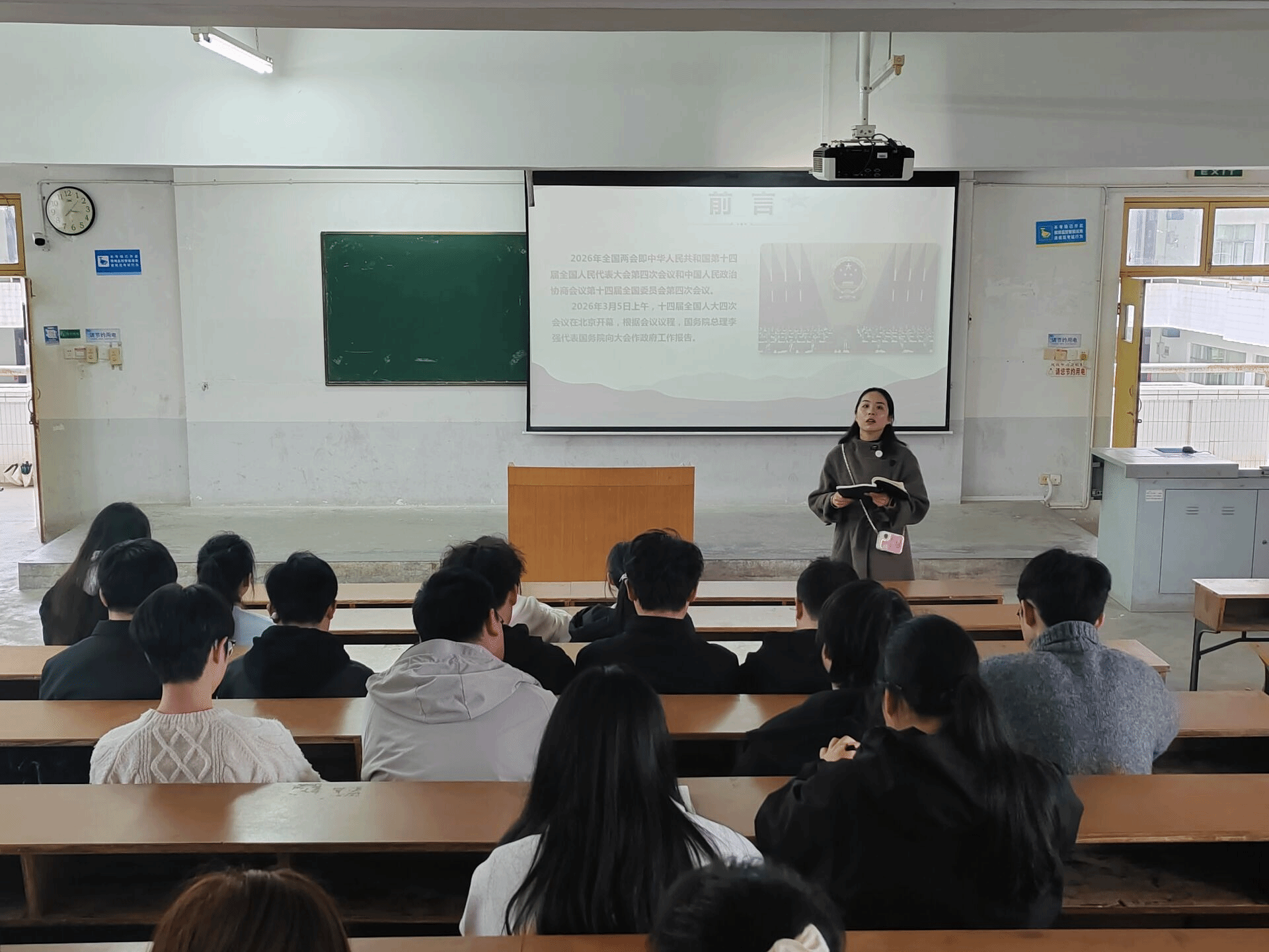组织开展“深学两会精神 赋能学生成长之路”主题班会。本次班会由各年级辅导员主持,聚焦两会精神、学业指导、就业服务和生涯规划四大核心,实现思想引领与成长帮扶深度融合,助力学生成长成才。